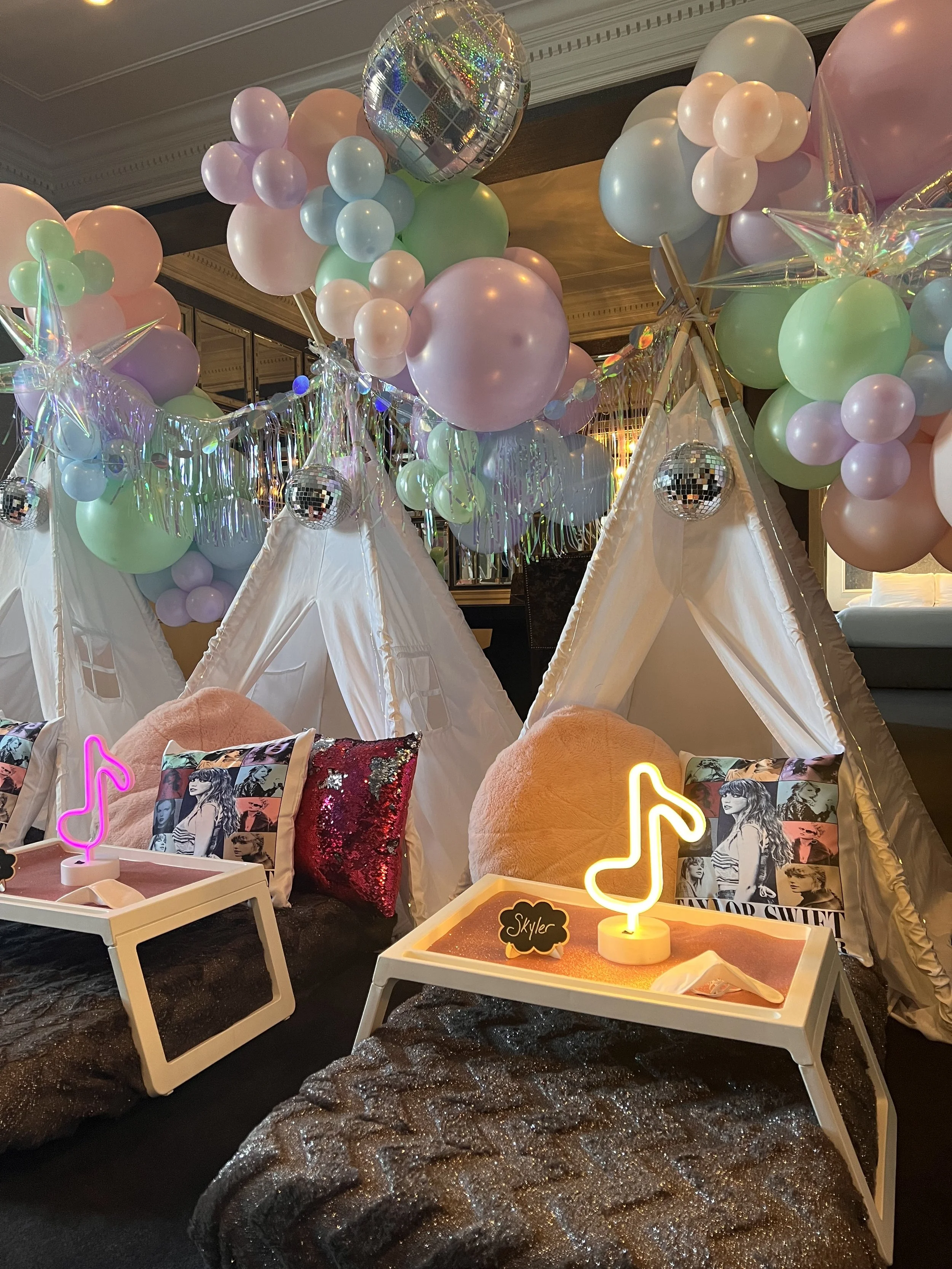 Each Balloon bunch measures 2-4ft in length and can be customized to match your sleepover theme.
